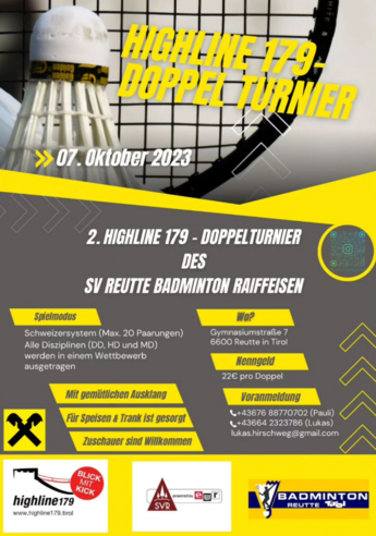 Nenngeld: 22€ pro Doppel / Spielmodus: Schweizersystem / Voranmeldung unter: Pauli: +43 676 88770702 - Lukas: +43 664 2323786 oder lukas.hirschweg@gmail.com / Natürlich sind auch Zuschauer herzlich Willkommen / Für Speis und Trank ist gesorgt.