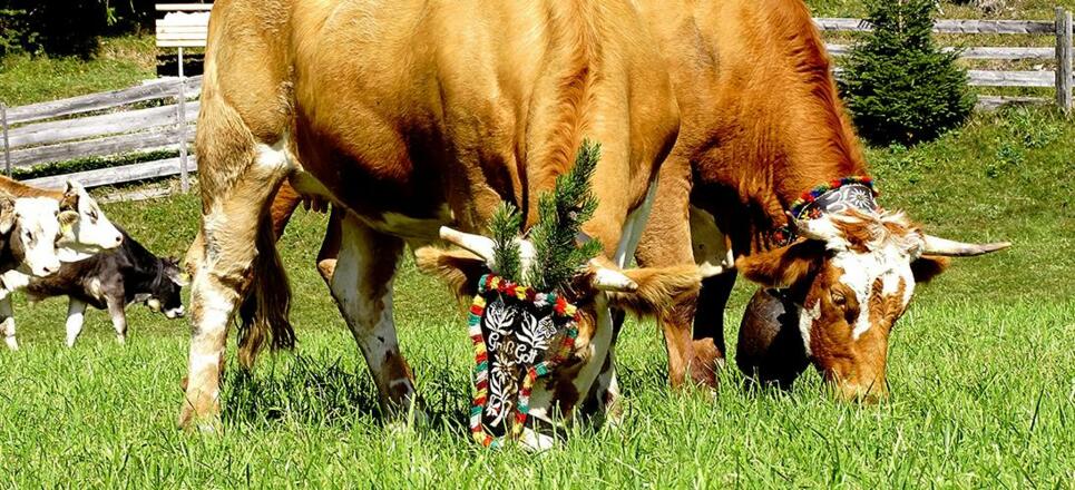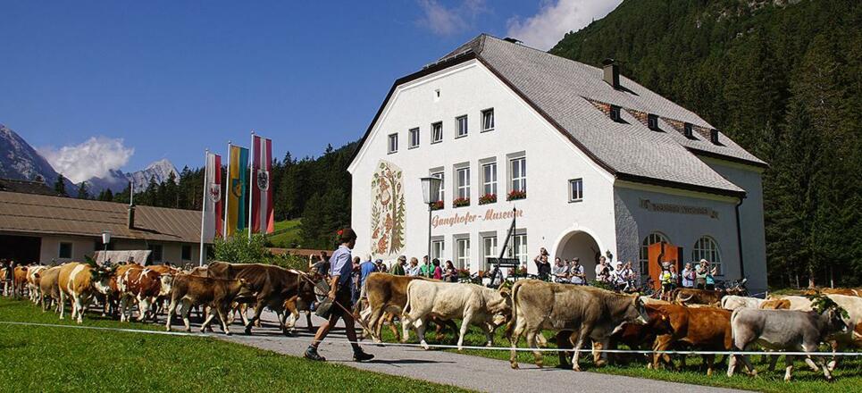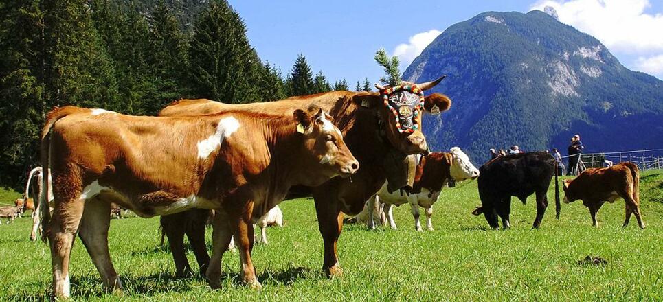 Die Kühe werden von der Gaistalalm über Klamm, Plaik und Platzl nach Kirchplatzl und weiter in ihrer Heimatställe getrieben.