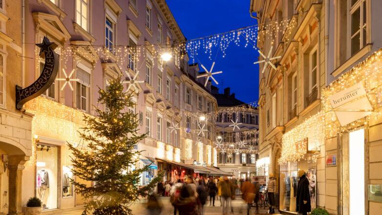 In rund 20 Auslagen der Geschäfte wird hier zur „Grazer Kripperlroas“ geladen.