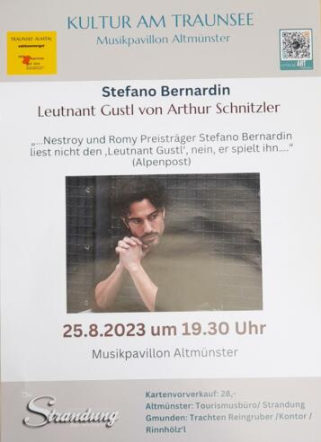 "...Nestroy und Romy Preisträger Stefano Bernardin liest nicht den Leutnant Gustl, nein, er spielt ihn..."