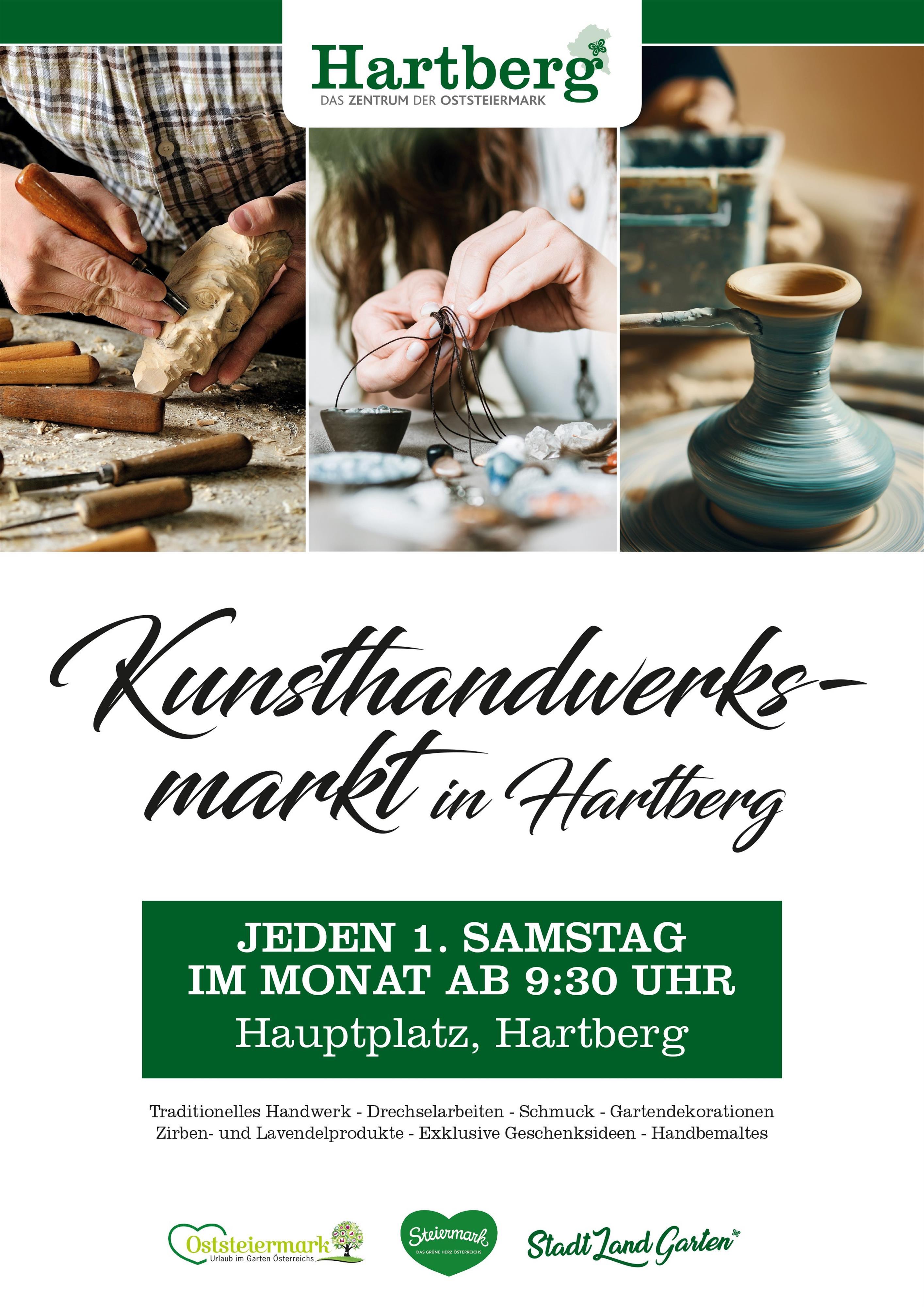 Jeden 1. Samstag im Monat findet am Hauptplatz und in der Fußgängerzone ab 9.30 Uhr ein Kunsthandwerksmarkt mit regionalen Ausstellern statt. Verbinden Sie Ihren Besuch mit einem Frühstück in einem der zahlreichen Gastgärten oder zum Bummeln in der Innenstadt.