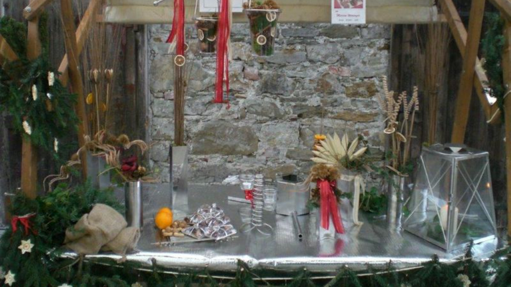 Neben Handwerk und Kunst aus Holz, Garn, Wolle, Stoff, Wachs werden auch künstlerische Werke der Patschenstrickerinnen, Drechsler und Kripperlbauer geboten. Glaskünstler zeigen ihre selbstgemachten Christbaumkugeln, Schalen, Kreuze, Bilderrahmen und Schmuck.