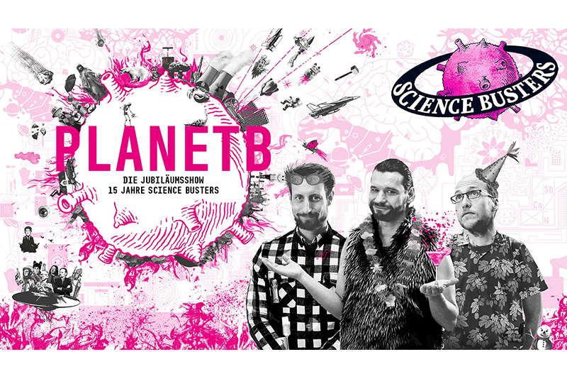 Planet B Die Kelly Family der Naturwissenschaften feiert: 15 Jahre Wissenschaft im rosa Trikot. 15 Jahre Kunststoffnippel im Dienst der Aufklärung. Eigentlich könnten sich die Science Busters zum Jubiläum zurücklehnen und die Glückwünsche genießen. Doch sie schauen nur kurz zurück. Denn als schnelle Eingreiftruppe der Wissenschaft haben sie noch jede Menge Arbeit vor sich. Und machen sich auf die Suche nach PLANET B. Peer reviewed, mit funktionierenden Experimenten, echten Wissenschaftlern und selber erfundenen Witzen. MC Martin Puntigam (Kabarettist & Univ.-Lekt. Uni Graz), Dr. Florian Freistetter (Astronomie) und Dr. Martin Moder (Molekularbiologie) erklären und zeigen: Wie lang ist die Lieferzeit von Planet B? Können wir schneller denken als unser Gehirn? Wie fälscht man Studien wissenschaftlich korrekt? Sind Kamele Impfgegner? Wie kommt man eigentlich auf was drauf? Wie überprüft man, ob es stimmt? Dürfen sich Sternschnuppen etwas wünschen, wenn sie einen Menschen sehen? Und: Was soll ein Fisch machen, wenn sein Flussbett auf Wasserader steht? Mit DIY-Sauerstoffkatastrophe, illegalem Glücksspiel, Flammenhölle für Anfänger und on stage Vulkanausbruch. Denn Wissenschaft ist das, was auch dann gilt, wenn man nicht dran glaubt. Kartenverkauf Zentralkartenbüro Leoben Josef Graf-Gasse 4-6 8700 Leoben +43 3842 32110-15 Tickets online kaufen