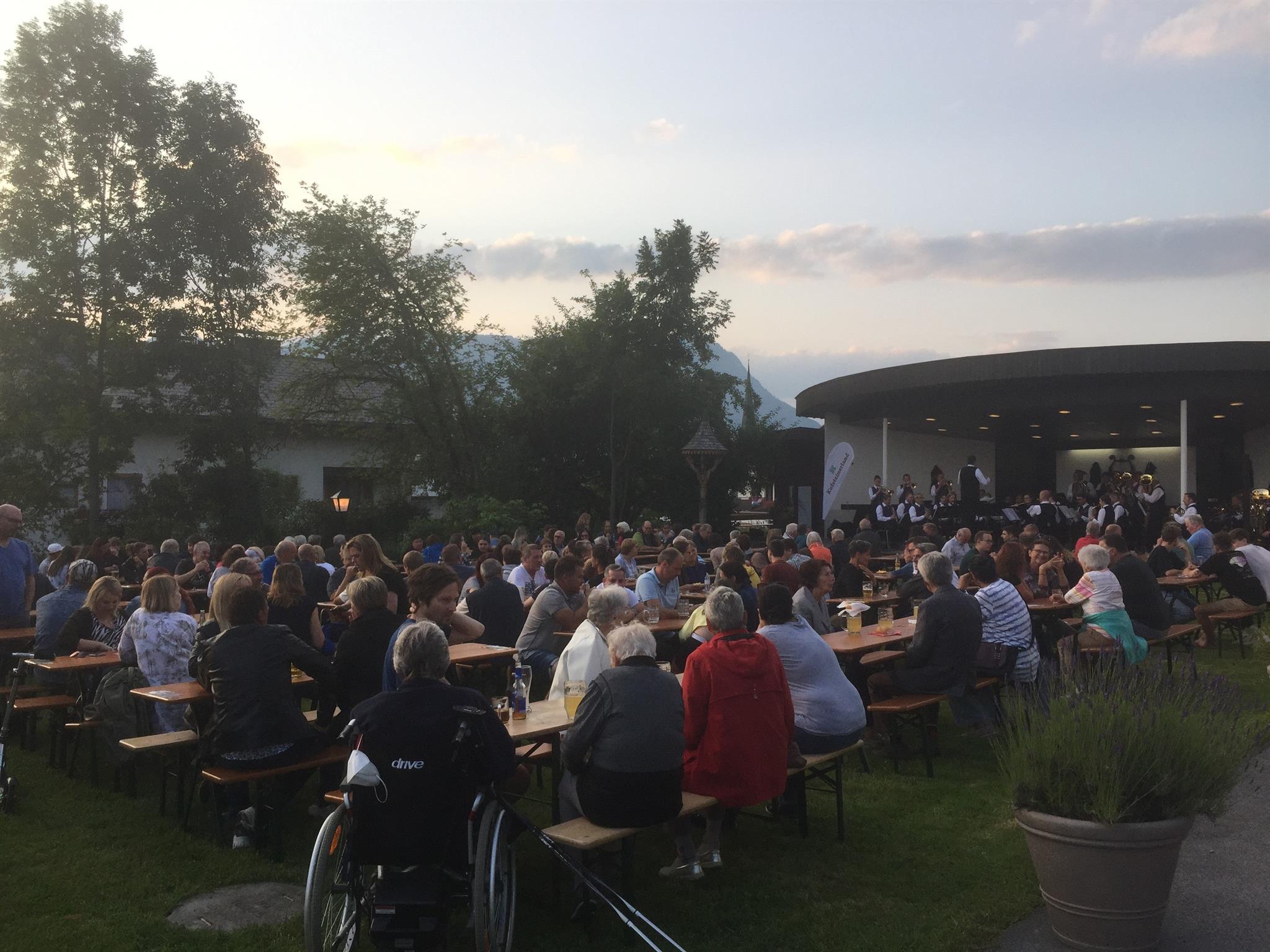 Genießen Sie bei sommerlichen Temperaturen zu einem Glaserl Wein oder Bier beim Musikpavillon einen musikalisch bunten Abend mit der Bad Häringer Knappenmusikkappelle.