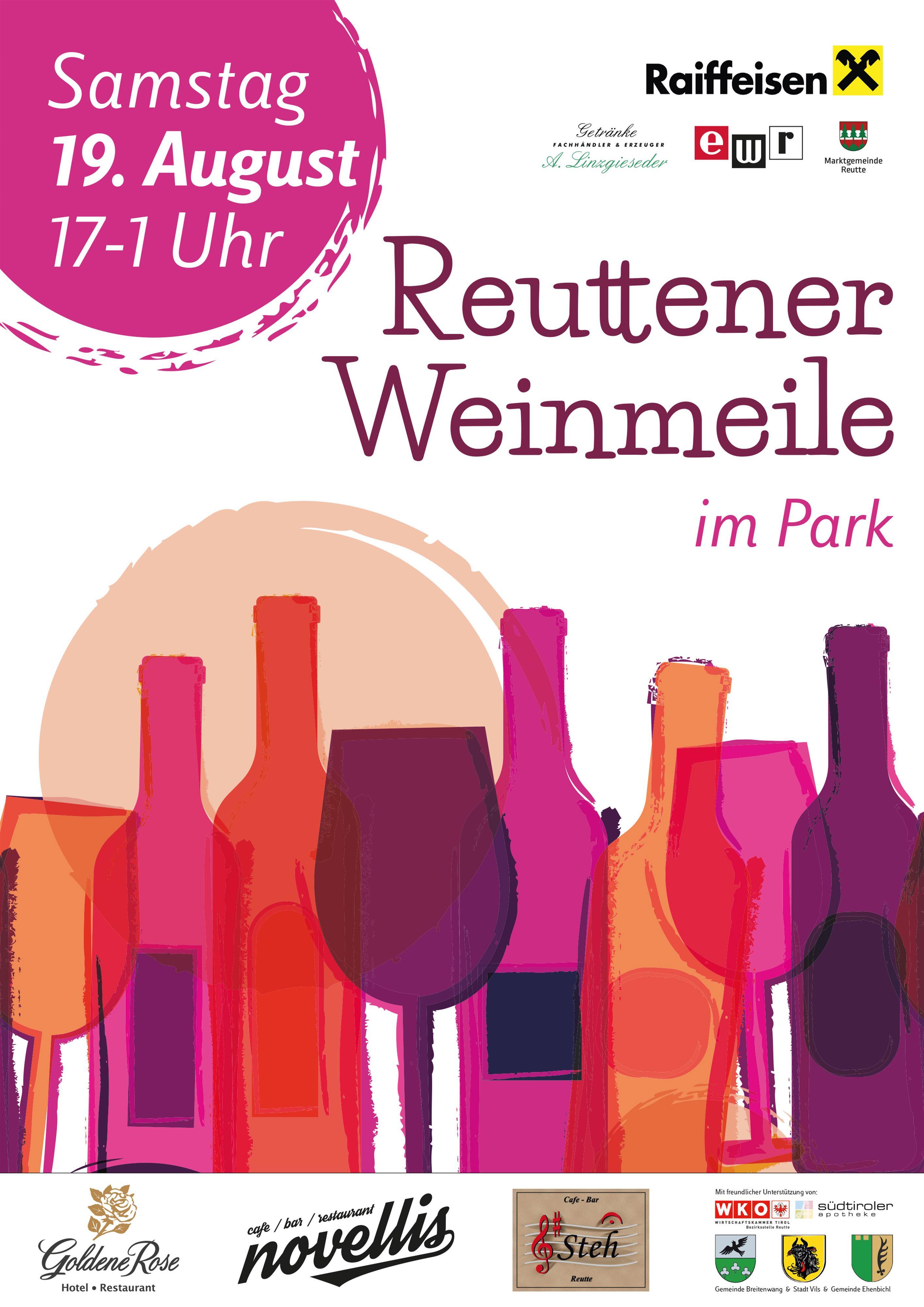 Auch heuer veranstalten das Novellis gemeinsam mit Cafe Bar Steh & Hotel Goldene Rose die Reuttener Weinmeile. Wir lassen die Weinmeile im schönen Park vor dem Pavillon wieder aufleben! TOP Winzer werden ihre Schätze zum Besten geben.