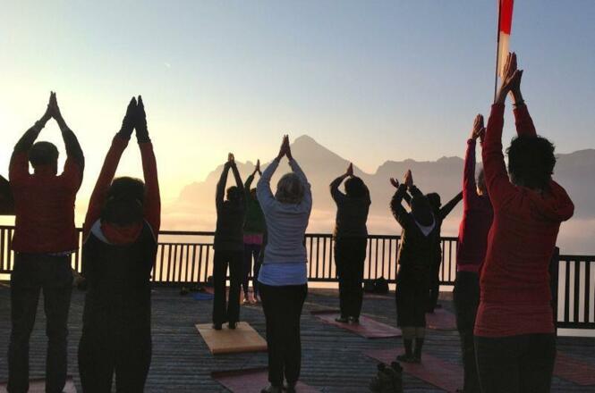 Sonnenaufgangs-Yoga auf der Panoramterrasse Kreuzjoch