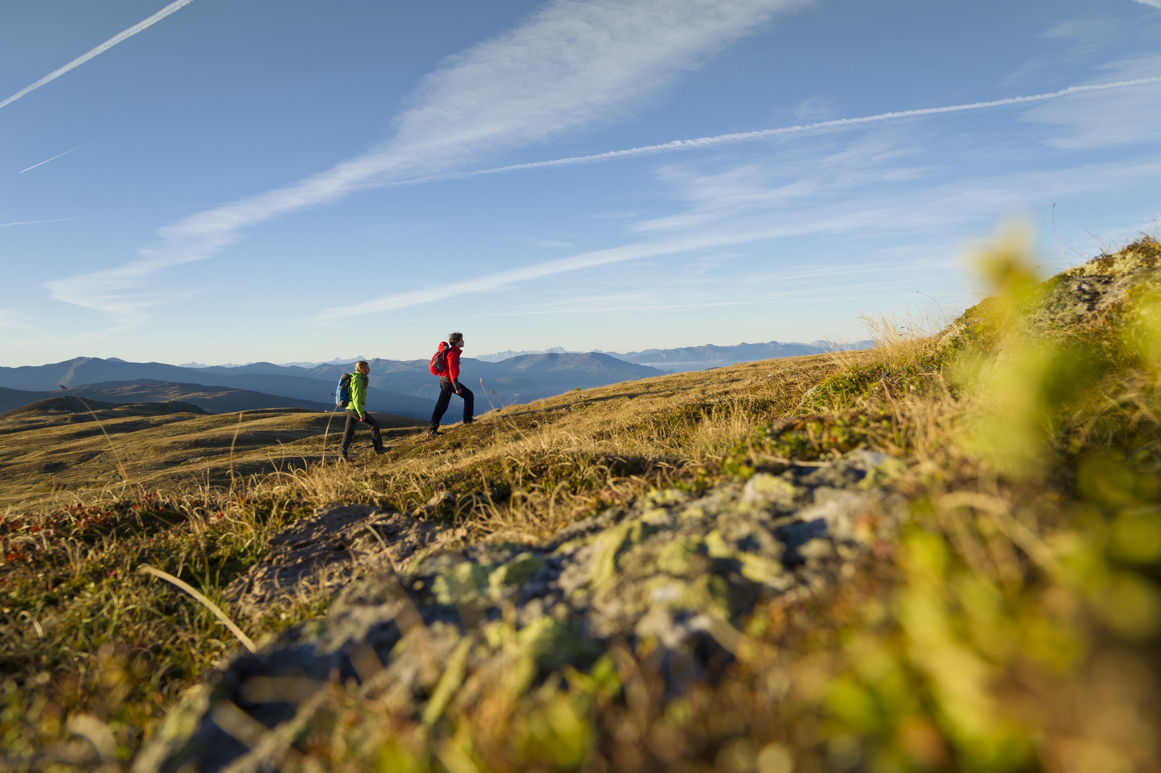 Mit dem Sessellift geht es auf 2.210m Seehöhe. Hier startet die mittelschwere Wanderung über das Teuerlnock (2.145m) über die Branntweinerhütte und den Panoramaweg zurück auf die Katschberghöhe.