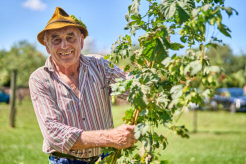 Mit dem Auszug um 12 Uhr geht es los, wenn die Hopfenzupfer von Blasmusik begleitet vom Lehnerhof zum Hopfenfeld ziehen. Der Stangler entfernt dann zuerst die Reben von den Eisendrähten, dann werden die Hopfendolden gezupft. Wer mag, darf bei der traditionellen Hopfenernte mitmachen.