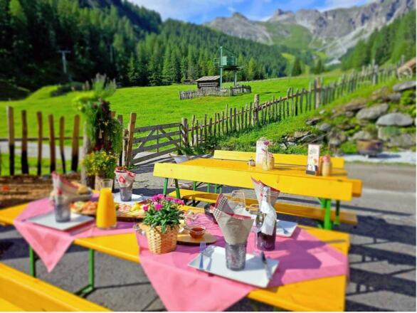 Genießen Sie mit Ihren Lieben ein ausgedehntes Almfrühstück im gemütlichen Alm-Restaurant oder auf unserer wunderbaren Sonnenterrasse.