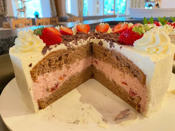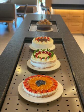 Gemütliches Beisammen sein auf unserer neuen Panoramaterrasse mit Selbstgebackenen Kuchen sowie Torten von unserem Dessert Buffet. Der einzigartige Fernblick von der neuen Terrasse lässt das Herz höherschlagen!