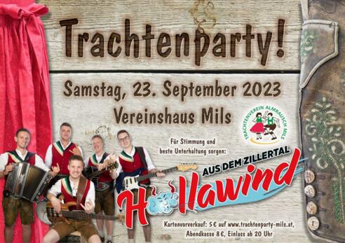 Es ist wieder soweit, der Trachtenverein Almrausch Mils veranstaltet am 23. September 2023 im Vereinshaus Mils den alljährlichen Trachtenball. Egal ob Pfiff-, Sekt-, Kellerbar oder unsere Weinlaube, hier ist für jeden etwas dabei, wenn dieses Jahr die Pagger Buam aus der schönen Steiermark für Stimmung sorgen. Vorverkaufskarten sind online unter www.trachtenparty-mils.at erhältlich