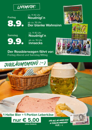 Gemeinsam wird dieses Jubiläum mit Livemusik, Geburtstagsstimmung, Leberkäs und Bier gefeiert!