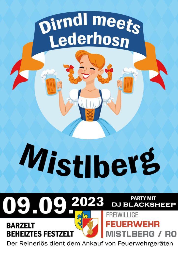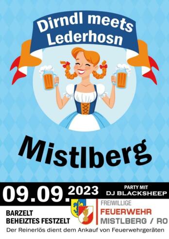 Also, markiert euch den 09.09.2023 fett im Kalender und kommt zahlreich in eurer schönsten Tracht nach Mistlberg. Lasst uns gemeinsam einen unvergesslichen Tag voller Musik, Tanz und guter Laune erleben! Wir sehen uns auf dem „Dirndl meets Lederhosn“ Fest!