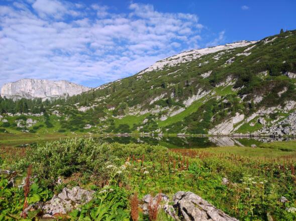 Tag 3: Nach einem ausgiebigen Frühstück verabschieden wir uns von der Pühringerhütte, vorbei beim Elmsee geht´s auf unserer letzten Etappe weiter zu den beiden Lahngangseen. Zweifels ohne eine der besten Plätze im Toten Gebirge um kurz inne zu halten. Hier erwartet dich wahrlich ein Naturjuwel. Nach einer kurzen Rast spazieren wir weiter. Der Grundlsee - unser Endpunkt- ist nun nicht mehr weit.