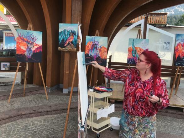 Von der Skizze bis hin zu der fertigen Arbeit. Sei live dabei, wenn Marlene Schaumberger die Bergwelt in ein farbiges Erlebnis verwandelt. Mit Acryl auf Leinen und den verschiedensten Stiften entstehen ausdrucksstarke Arbeiten.