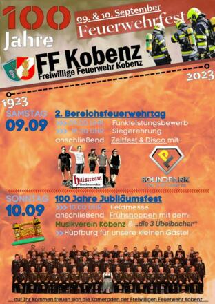 100 Jahre Freiwillige Feuerwehr Kobenz das wird am 09. & 10.09.2023 ausgibig gefeiert.