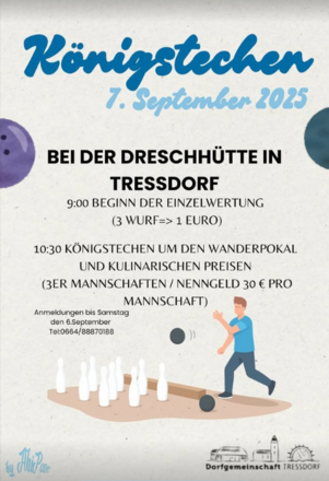 10:30 Uhr: Königstechen um den Wanderpokal und kulinarische Preise (3er Mannschaft / Nenngeld € 30,- pro Mannschaft)