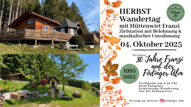 Gemeinsame Wanderung mit Hüttenwirt Franzi. Start der Wanderung Parkplatz Födinger Alm um 9:30 Uhr