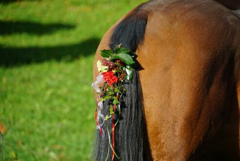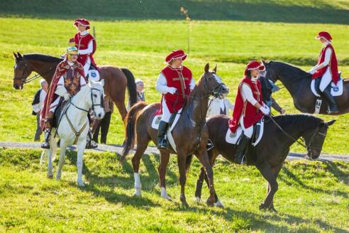 Im Jahre 1652 fand er zum ersten Mal statt, seitdem ist er Tradition in Blaichach: der Martiniritt.Eine schlimme Pferdeseuche drohte 1652 den damaligen Pferdebestand auszulöschen. Da setzten die Blaichacher auf die Kraft des christlichen Segens: Um das Unheil vom Dorf abzuwenden und auch in Zukunft davon verschont zu bleiben, wurden die Pferde gesegnet. Und ihre Besitzer verpflichteten sich dazu diesen Ritus jedes Jahr zu wiederholen. Deshalb lädt heute der Martiniverein alljährlich Anfang November zum traditionellen Martiniritt mit Pferdesegnung ein. Besuchen Sie doch selbst einmal unseren farbenfrohen Festzug mit herausgeputzten Pferden, Wagen und Gespannen und einer historischen Reitergruppe. Sie werden begeistert sein!Aufstellung ist um 13.00 Uhr am Parkplatz hinter der Bäckerei Härle.Der Zug geht vom Parkplatz um 13.30 Uhr nach Ettensberg in "Burger's Buind" zur traditionellen Pferdesegnung, die um 14 Uhr stattfindet. Bei schlechter Witterung findet sie Segnung in der Reithalle Ettensberg statt.Anschließend wird zum festlichen Ausklang im Trachten-Vereinsheim in Blaichach geladen. Für das leibliche Wohl ist bestens mit Kaffee und Kuchen gesort!