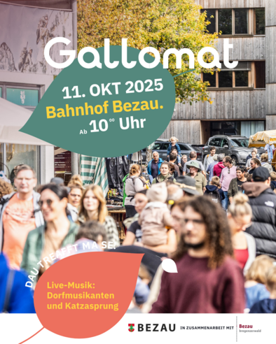 Unser traditioneller Gallomat findet wieder am Samstag, 10. Oktober 2026 beim Bahnhof Bezau statt.