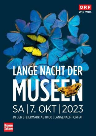 Am Samstag, dem 7. Oktober 2023, findet die diesjährige „ORF-Lange Nacht der Museen“ in ganz Österreich statt. Bereits zum 23. Mal ermöglicht es der ORF mit der „ORF-Lange Nacht der Museen“ den Besucher/innen, mit nur einem Ticket eine Vielzahl an Museen zu besuchen. Auch heuer beteiligen sich wieder zahlreiche Museen und Galerien und öffnen ihre Türen von 18.00 bis 01.00 Uhr Früh.