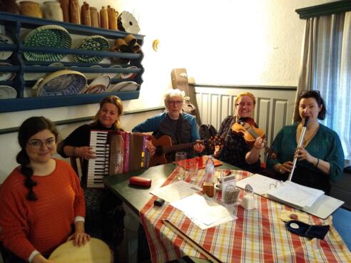 Musik, die zum Tanzen und Träumen einlädt und durch Lebendigkeit und klangliche Vielfalt besticht! Die fünf Musikerinnen spielen Traditional Irish Folk – gesungen und gespielt mit Fiddle, Tin Whistle, Akkordeon, Gitarre, Cello und Percussions.
