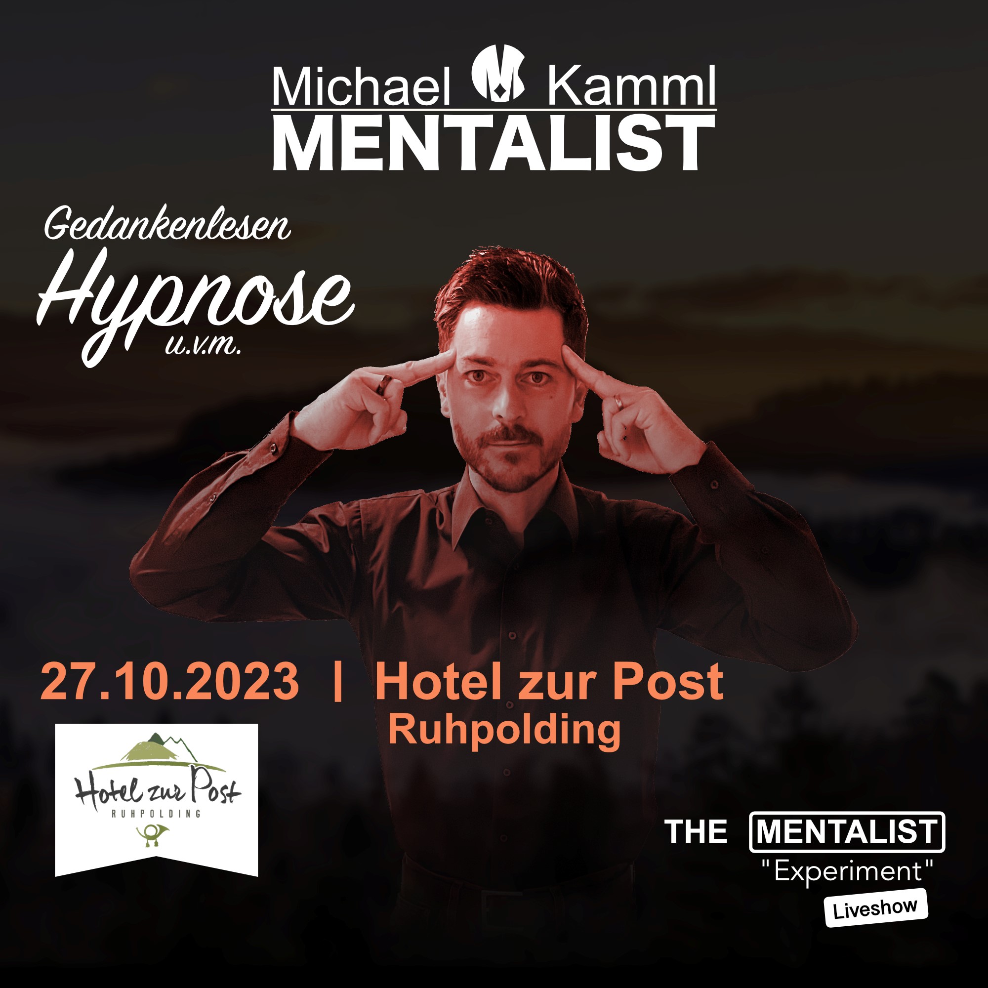 Michael Kamml ist der Mentalist aus dem Chiemgau. Seine Liveshows sind interaktiv, lustig aber auch tiefgründig, inspirierend und geheimnisvoll. Er agiert mit unseren Gedanken, unseren Emotionen und unserem Verhalten.