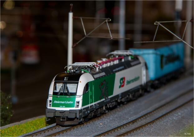 Bei einer Fläche von mehr als 150m² davon 60m² Anlagenfläche - ein sehenswerter Landschaftsbau - 800m verlegten Gleisen - 164 Weichen und mehr als 60 Zügen bis zu 4 Meter Länge - verwirklichen sich Träume aus Kindertagen.