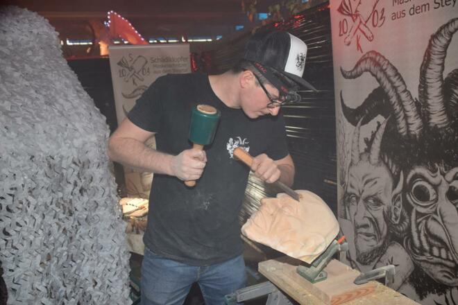 Sie betreten die Halle und tauchen ein in die Welt kunstvoll geschnitzter Masken. Über 55 Maskenschnitzer und Aussteller präsentieren ihre Werke hautnah. Dabei entdecken Sie echte Handwerkskunst – ebenso wie regionale Kulinarik, die typisch steirisch schmeckt. Wo Sie hinschauen: Kunst zum Anfassen, Essen zum Genießen und gute Stimmung überall.