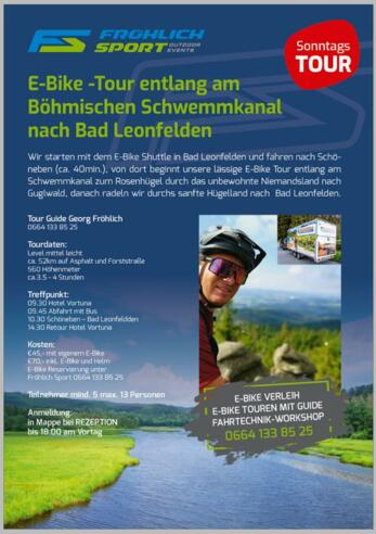 | Preisinformation | 45,- mit eigenem E-Bike 70,- inkl. E-Bike und Helm |