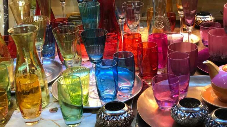 Herbstmarkt mit einer Auswahl an Second-Hand-Mode sowie wunderschönen Kleidungsstücken aus dem Laden und Schals aus Indien.