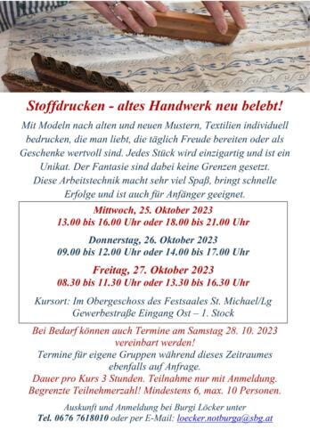 Auskunft & Anmeldung unter 0676 7618010 oder per E-Mail: loecker.notburga@sbg.at