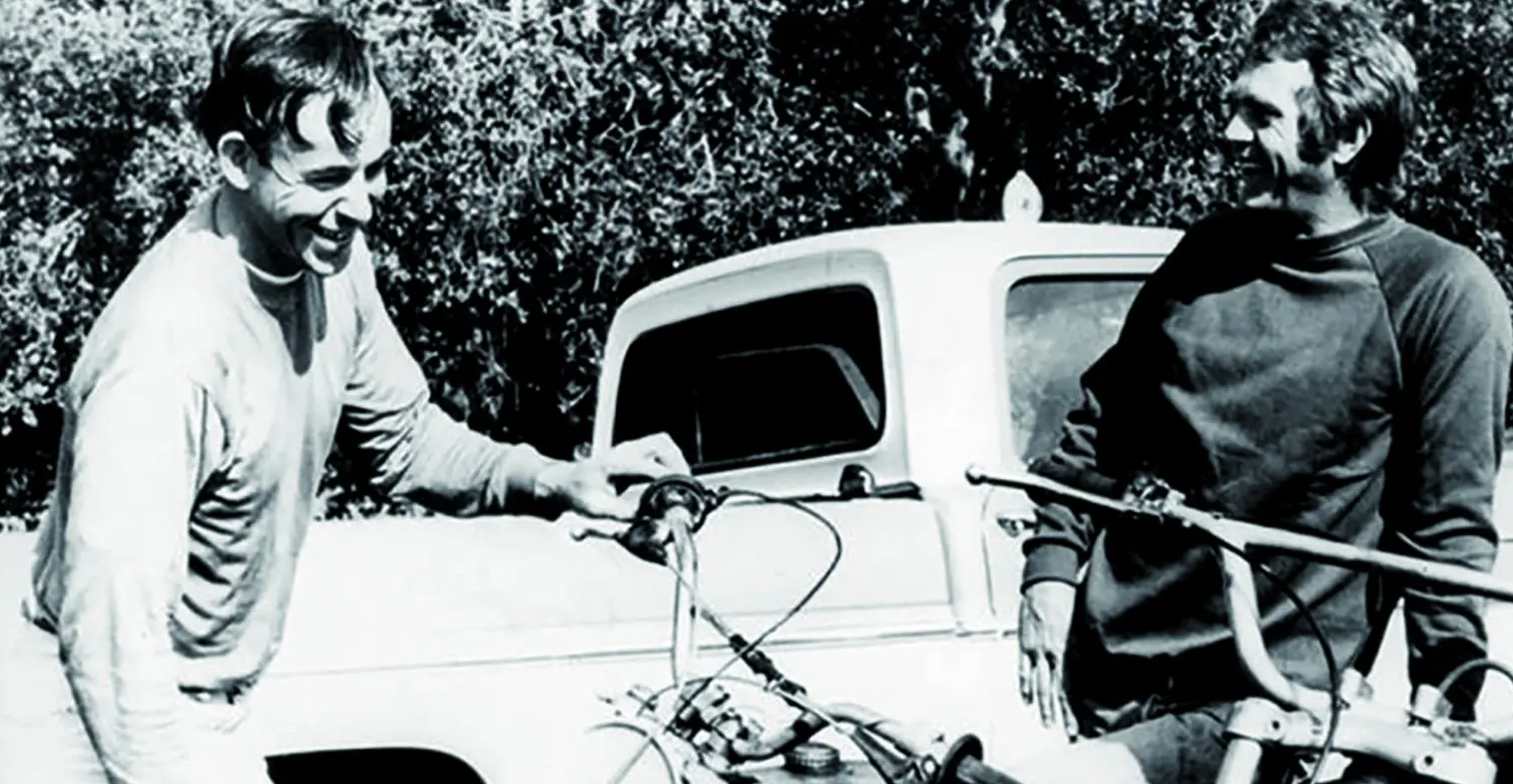 Es war nach den Dreharbeiten zu „Die glorreichen Sieben“ mit Fröhlich als Produktionsleiter gewesen, als McQueen mit „Buddy“ Malcolm Smith (im Bild links neben Steve) auf Motorrädern durch die seiner kalifornischen Heimat nahegelegene Baja-Wüste (in Mexiko) pfeilte. Dabei traf sein Freund mit dem Vorderrad einen Stein, was wiederum in einem doppelten Salto vorwärts geendet hatte. Das allein war noch nicht schlimm, schlimmer war, dass die Sohle des Stiefels samt Fußsohle (!) gespalten lose nach unten hing – und das mitten in der Wüste. Steve wusste, dass in dieser Gegend Wundstarrkrampf und Blutvergiftung in der Luft schwirrten wie Fliegen. Also packte er Malcolm auf seine Husky 400 (Husqvarna Motocross-Rennmaschine) und raste Richtung Tijuana zum Grenzübergang nach San Diego …