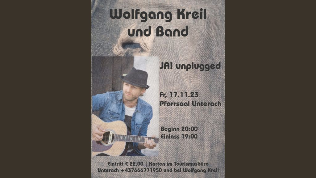 Das bereits 2019 veröffentlichte Album verpackt sehr ehrliche und authentische Texte im Flachgauer Dialekt, gepaart mit jeder Menge Blues Rock Energie. Nach vielen erfolgreichen Konzerten gibt es nun eine kleine unplugged Tour, also alles akustisch und etwas "leiser". Diese unplugged Tour nutzt Wolfgang Kreil mit seiner Band auch dazu, bereits Werbung für das 2024 erscheinende zweite Mundart Album zu betreiben, was den Konzertbesuchern viele Premieren von unveröffentlichten Songs beschert.