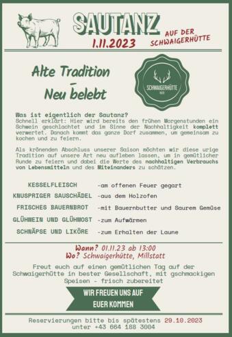 SAUTANZ auf der Schwaigerhütte am 1. November ab 13 Uhr!