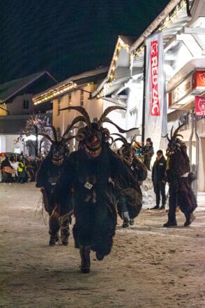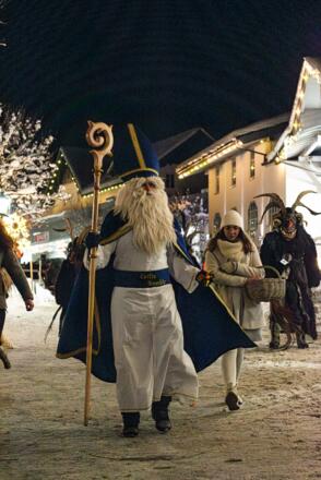 Der Heilige Nikolaus und seine finsteren Gefährten, die Krampusse, ziehen durch Eben. Gemeinsam mit seinen Engerl verteilt er Süßes an die Kinder – aber Achtung vor dem Krampus mit seiner Rute und seinen rußigen Händen!