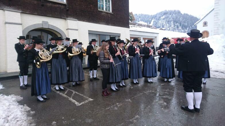 Die Musikanten der TK Fontanella spielen für Sie ein Ständchen, um das alte Jahr zu verabschieden und das neue Jahr musikalisch zu begrüßen. Nach dem Ständchen im Dorf zieht die TK Fontanella weiter nach Faschina.