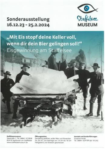 "Mit Eis, stopf deine Keller voll, wenn dir, dein Bier gelingen soll!" SONDERAUSSTELLUNG - Eisgewinnung am Staffelsee - im Staffelseemuseum Seehausen vom 16.12.2023 bis 25.02.2024
