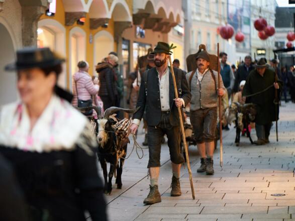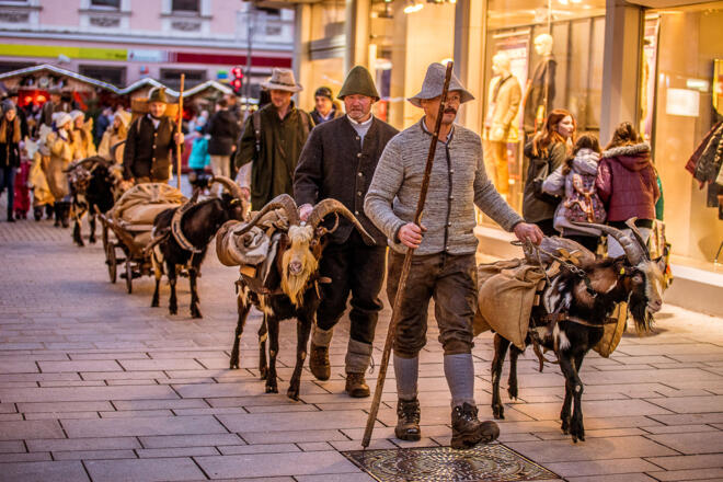 Die Raurisker Goldknappen sind mit ihren meckernden Geißböcken wieder zu Besuch in der Welser Weihnachtswelt. Diesmal mit schaurig-traditioneller Verstärkung im Gepäck: den Schnabelperchten. Gemeinsam starten sie ihren Marsch im Gösser Biergarten Advent und ziehen durch die weihnachtliche Innenstadt, machen dabei Halt an der Almdorfbühne am Stadtplatz und setzen ihren Weg bis hin zum Ledererturm fort. Im Inneren des Ledererturms, einem Ort, in dem das Christkind seine Heimat hat, überreichen sie dem Christkind ein kostbares Säckchen voller Goldstaub als Zeichen des Segens. Danach geht der Marsch wieder zurück zum Gösser Biergarten Advent.