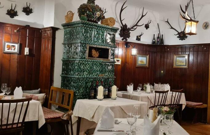 In der Küche wird ein knusprig gebratenes Martinigansl, Rotkraut und Erdäfpelknödel zubereitet. Zur Nachspeise werden hausgemachte Mehlspeisen serviert.