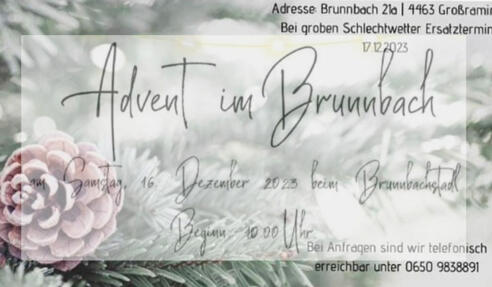 Genießt die eine oder andere selbstgemachte Köstlichkeit und die weihnachtliche Stimmung im Brunnbach.