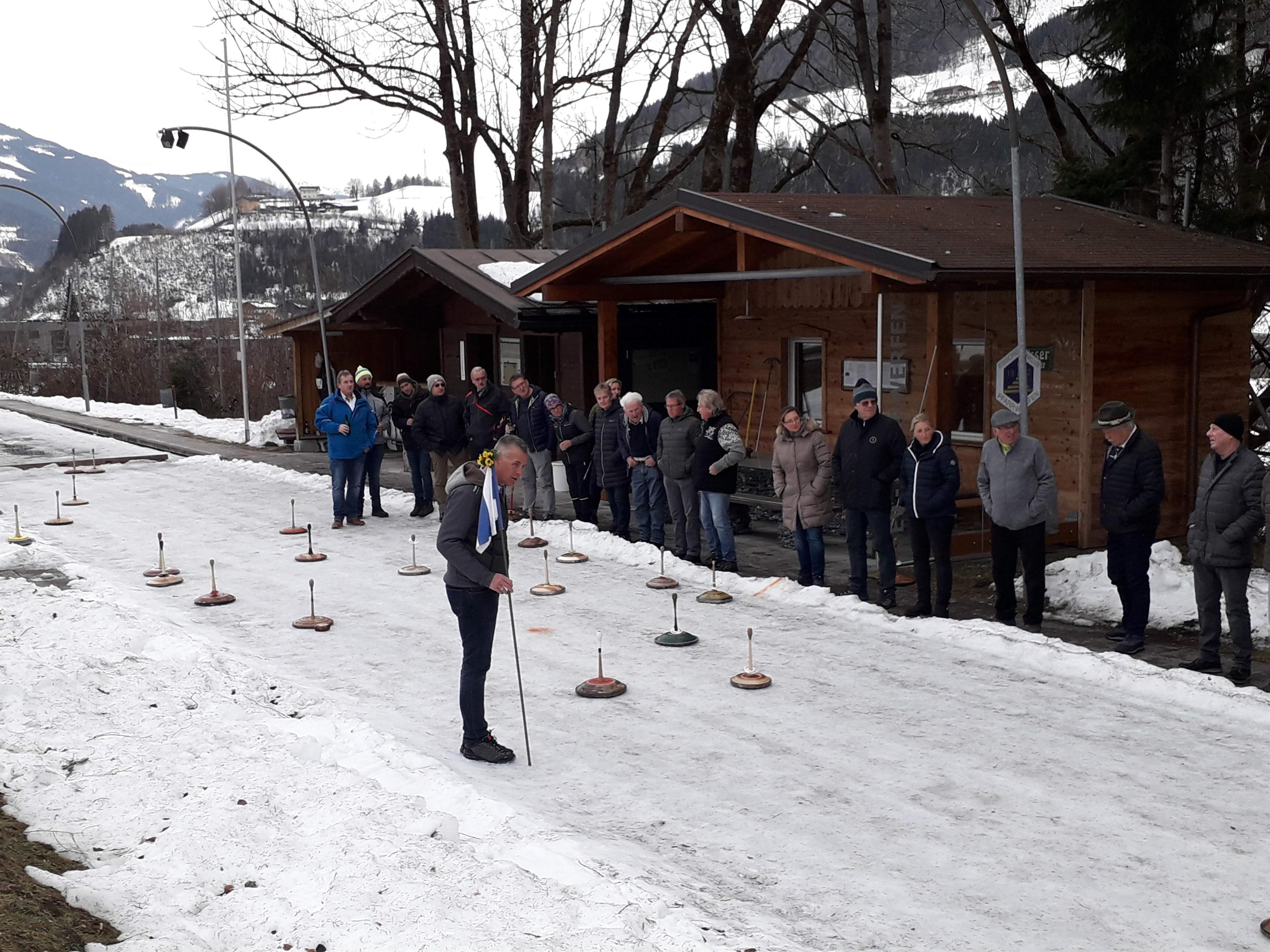 Traditionelles Heringseisschießen am Aschermittwoch auf der Eisbahn in Pfarrwerfen.