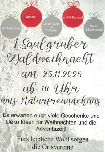 Wir laden Sie herzlich am 25.11.2023 zum Ersten Saulgruber Waldweihnacht ein.