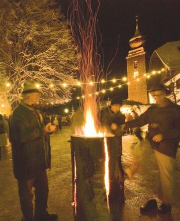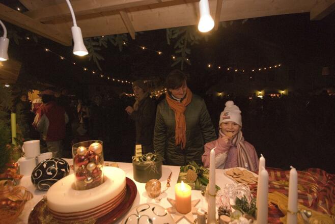 Kulinarische Köstlichenkeiten und in Handarbeit hergestellte Raritäten finden sie in den urigen Holzhütten am Kirchplatz.