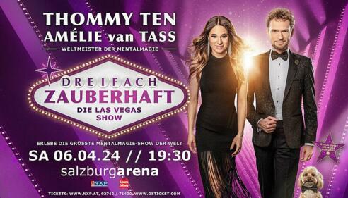 „Dreifach zauberhaft – Die Las Vegas Show“ ist das bisher größte Meisterstück von Thommy Ten und Amélie van Tass. Mit ihrer außergewöhnlichen Mentalmagie, den eigens für die Show kreierten Illusionen sowie der beeindruckenden Inszenierung werden die beiden einmal mehr neue Maßstäbe setzen und beweisen, warum sie zu den berühmtesten und erfolgreichsten Magiern der Welt zählen.