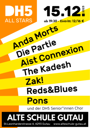 Das DH5 ist ein Kulturverein in der Herrenstraße, im Herzen von Linz. Er bietet einer großen Bandbreite an Initiativen Platz und Infrastruktur. Mit den Eigenproduktionen setzt der Verein inhaltliche Ankerpunkte rund um Demokratie, Vielfalt, Komplexität und Feminismus. Seit 2020 entstand in den Räumen des DH5 ein musikalisches Biotop, das sich aus einer Gruppe junger Musiker*innen nährt und in der österreichischen und deutschen Musikszene bereits deutliche Spuren hinterlässt.