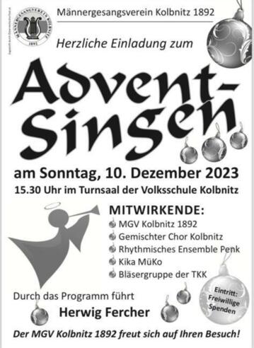 Herzliche Einladung zum Adventsingen des Männergesangsvereines Kolbnitz.