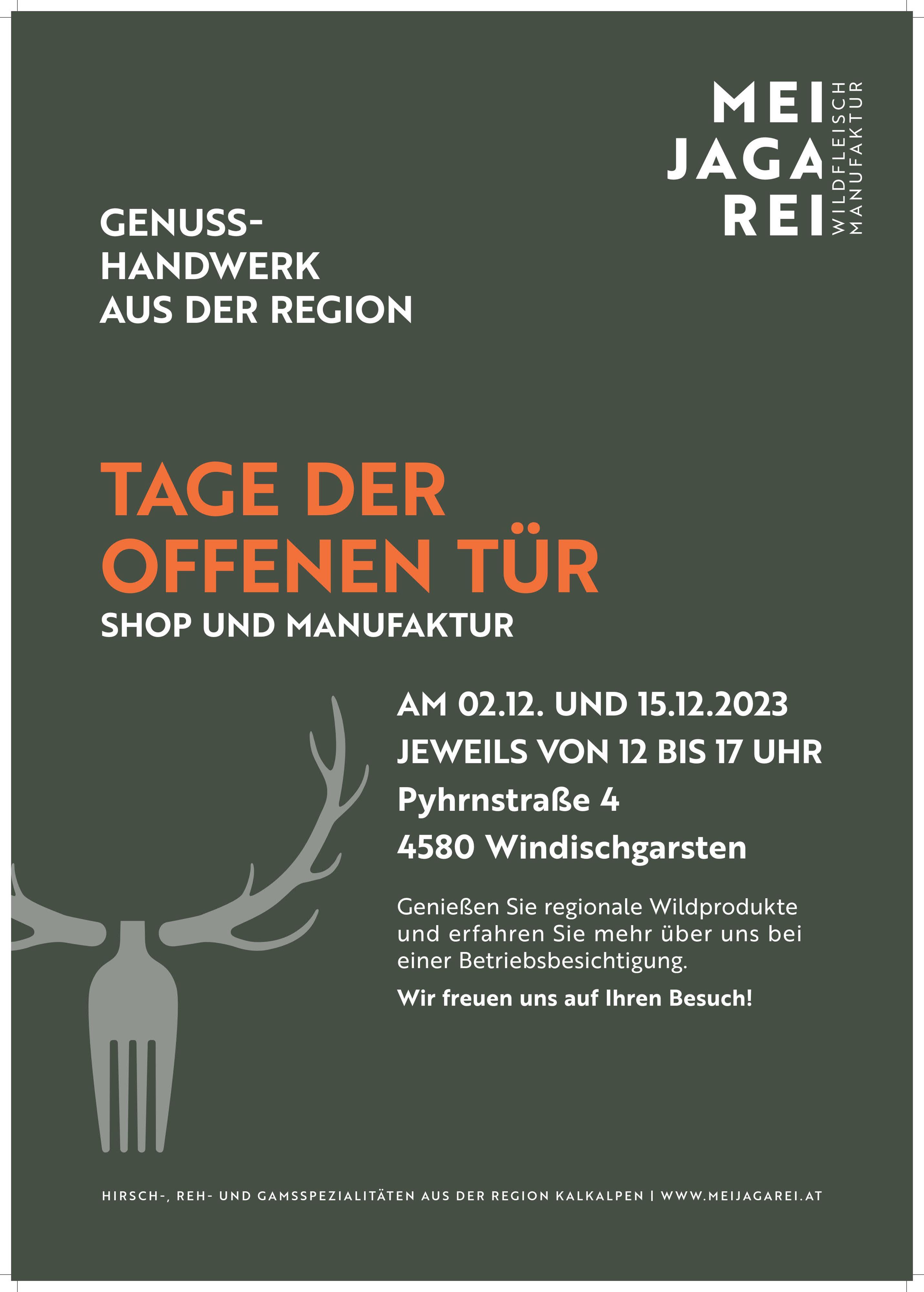 Genießen Sie regionale Wildprodukte und erfahren Sie mehr über uns bei einer Betriebsbesichtigung.
