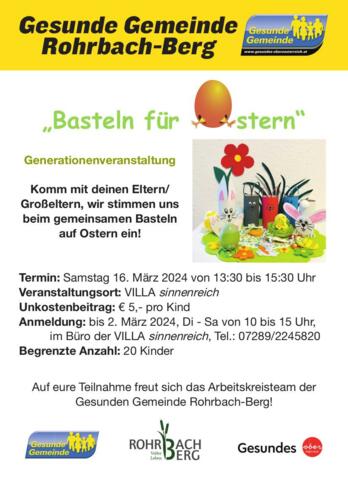 Komm mit deinen Eltern/ Großeltern, wir stimmen uns beim gemeinsamen Basteln auf Ostern ein.