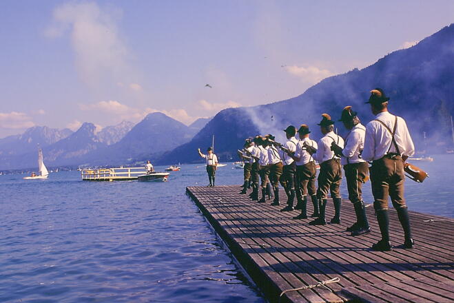 Am Heilig' Abend wird Gottes Sohn alljährlich von den Prangerschützen am Wolfgangsee begrüßt. Es will die Menschen einstimmen auf das Kommen des Herrn in der Heiligen Nacht. Die Prangerschützen begrüßen am Heiligen Abend das Kind von Bethlehem, den menschgewordenen Gottessohn. Mit den Engeln verkünden sie den Frieden auf Erden allen Menschen guten Willens. Wie einst der Himmelsbote den Hirten auf dem Felde frohe Kunde gebracht hat, wollen die Schützen es auch heute laut ins Land hineinrufen: "Euch ist heute der Heiland geboren!"